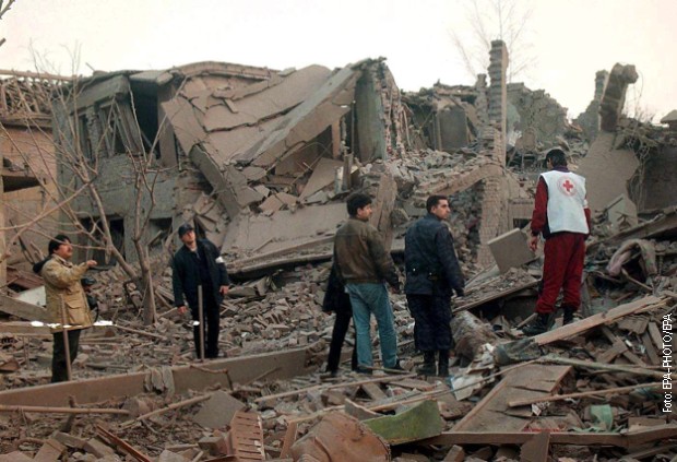 У раним вечерњим сатима 5. априла 1999. године НАТО снаге су са седам пројектила погодили двије централне градске улице у Алексинцу....