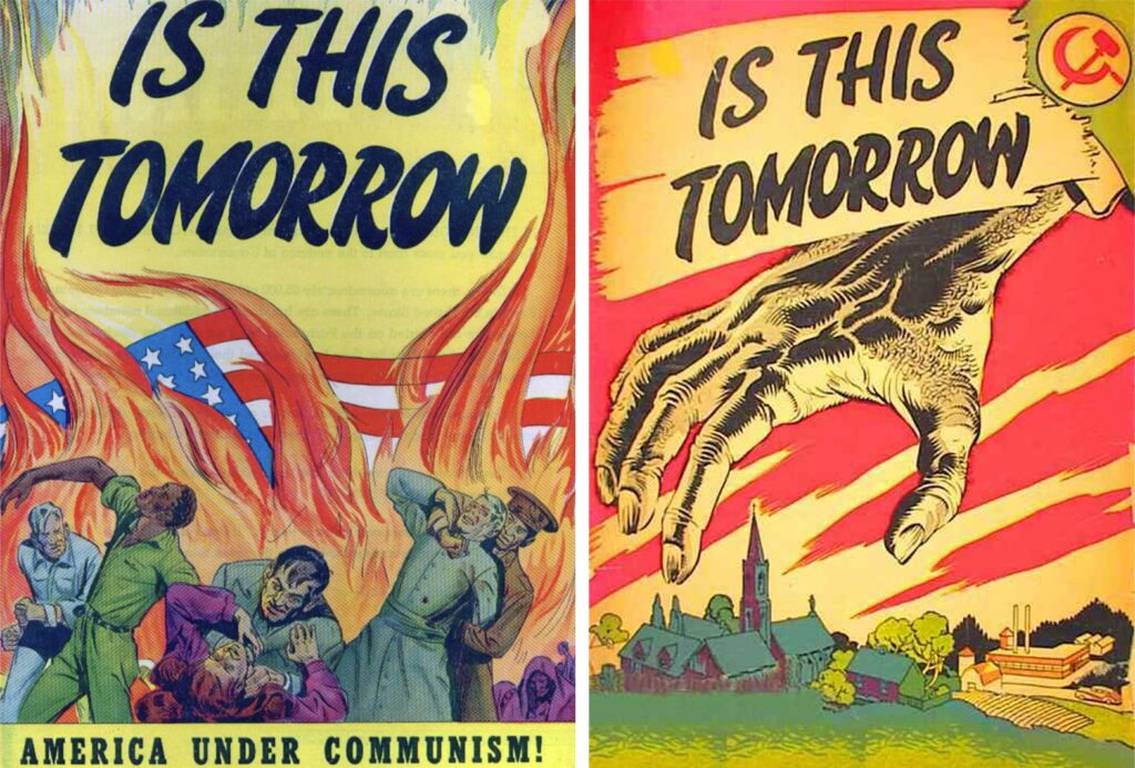 Филмска индустрија је такође одиграла кључну улогу у овом процесу. Холивуд је током Хладног рата постао један од најмоћнијих инструмената идеолошке пројекције. Филмови су систематски обликовали слику Совјетског Савеза као простора репресије, безличности и страха, док је западни начин живота представљан као природно тежиште људске слободе и среће. Истраживања и сведочења из тог периода показују да су америчке државне институције имале директан утицај на сценарије и продукцију појединих филмова, посебно оних који су се бавили темама комунизма, шпијунаже и глобалне безбедности.