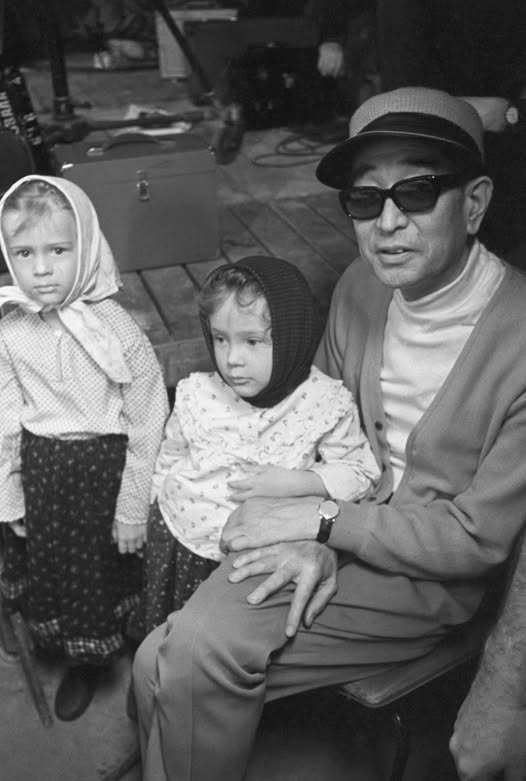 А на фотографији – Акира Куросава и руска деца. Лењинград, 1974. Биографи пишу да је велики редитељ већ помишљао да изврши харакири и упоређивао себе са лососом у прљавој води, али онда је дошао у Совјетски Савез да снима „Дерсу Узала“, и све је нестало као руком однесено.