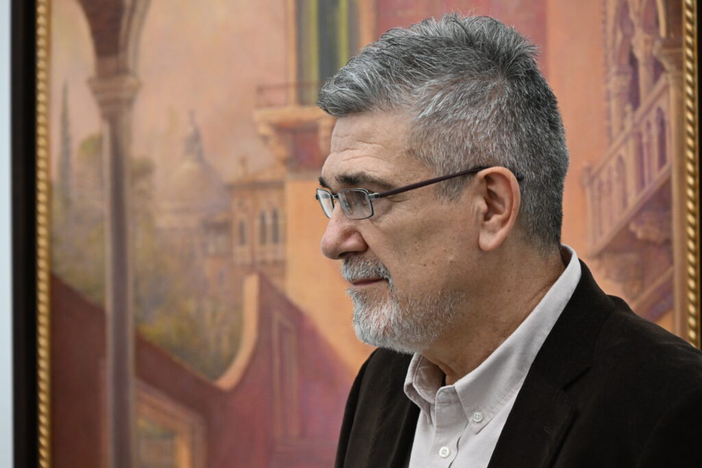 Текст је првобитно објављен у каталогу изложбе ТРАГОМ АЛЕФА Предрага Пеђе Милошевића, отворене 11. децембра 2025. године у Галерији РТС-а у Београду.