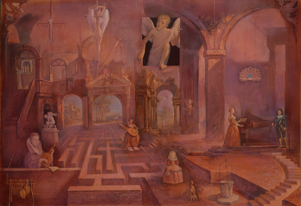 Могло би се рећи да овај уметник естетским и поетским преображавањем призора стварности, као и елемената ликовне и културне традиције, ствара један посебан уметнички свет мира и тишине, али који, поред ефекта смирености и утехе, у себи носи и тајну, загонетку, која би могла да садржи и назнаку претње, пропадања, пролазности и смрти. То као да је свет заустављеног времена, над којим се време ипак претећи надноси. Тако, на пример, на слици „Анђео времена”, анђео који однекуд ступа у један истовремено статичан и бесконачно сложен лавиринтски призор, као да ће га истовремено покренути, оживети, али можда и уништити, активирати потенцијал животности или смртности који су у њему успавани, ослобађајући представљене људске прилике из зачараности или им откривајући његов смисао.