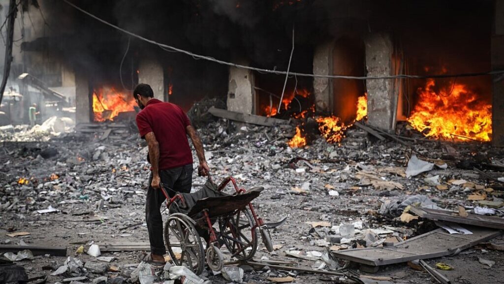 Тероризам, ту „атомску бомбу сиромашних“, Хамас је поново употребио када је 7. октобра 2023. напао Израел, убио око 1.200 људи и киднаповао 251 особу, на шта је Израел 9. октобра одговорио снажним, суровим, неселективним војним контраударом. Од тада је знатан део Газе готово сравнио са земљом, тј. систематски срушио или значајно оштетио 90 процената домова.