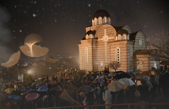 Оно што се, пак, десило у Косовској Митровици посебно нам је привукло пажњу. Реч је о банеру који је полиција запленила, а који је требало да буде постављен на једној згради. На њему је писало: Мир Божији, Христос се роди.
