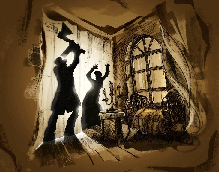 Зар се исто не дешава у Раскољниковљевом Петербургу? Све ​​ове уличице и ћорсокаци, преграде, дроњци који висе свуда, жуте тапете, прљава вода Катаринског канала – то није град као такав, већ лавиринти Раскољниковљевог сопственог ума, који јунака изнова и изнова воде до почетне тачке његовог психолошког путовања, до стана старице-зеленашице, до чињенице убиства. Раскољников верује да сви знају за његов злочин – јер то нису људи, већ плодови његове болесне маште, чудовишта кроз чије очи Раскољников види самог себе.