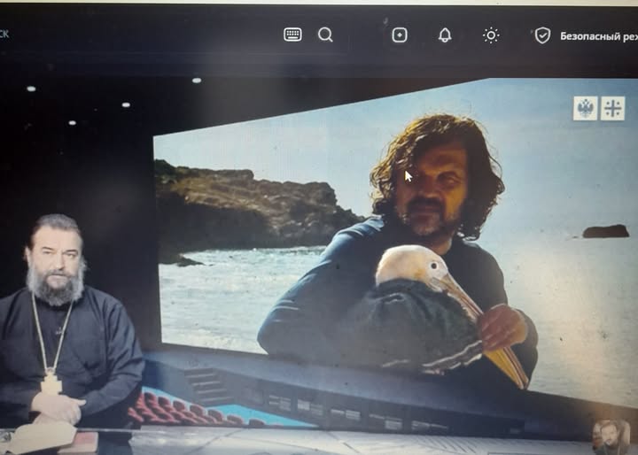 Човек и медвед, у пријатељским односима – то су вам руске бајке о Маши и медведу, и још боље, Серафим Саровски, например, и мишка, или Сергеј Радоњешки и мишка. Човек и мачка – у светој димензији – то је Нектарије Оптински. Он је говорио: свети људи су били велики, и имали су лава, а ја сам мали, ја имам мачку. Човек и магарац – то је Герасим Јордански. А ево, човек и пеликан – то је филм који вам предлажем да погледате. У кругу породице, обавезно. Таквих филмова је данас врло мало.