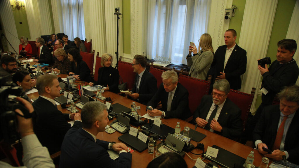 Делегација Одбора за спољне послове Европског парламента састала се данас у Скупштини Србије са потпредседницом парламента и председницом Одбора за европске интеграције Елвиром Ковач, са представницима посланичких група опозиције, а потом и са посланицима владајуће коалиције.