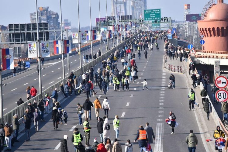 Студенти и групе грађана данас су око 11 сати блокирали мост Газела испред Сава центра поводом 100 дана од пада надстрешнице на железничкој станици у Новом Саду када је живот изгубило 15 људи.