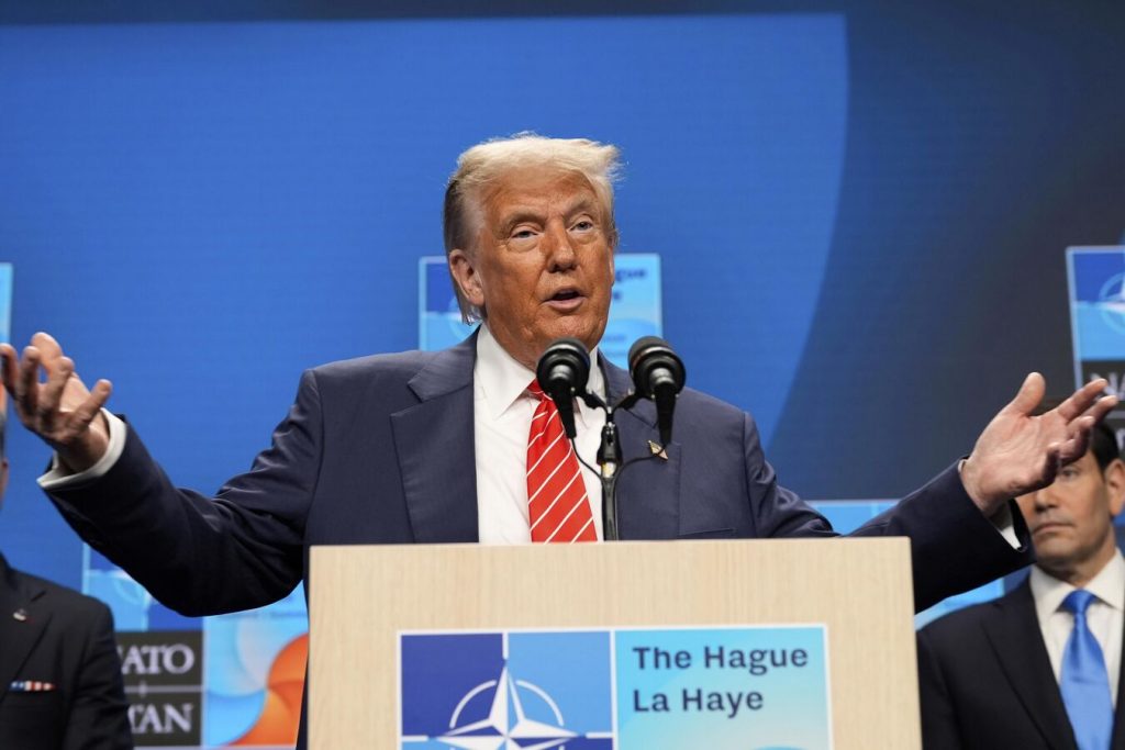 Амерички председник Доналд Трамп ниједном није директно поменуо Русију у свом говору на затвореном састанку са лидерима НАТО-а у Хагу, пише агенција „Блумберг“, позивајући се на извор.