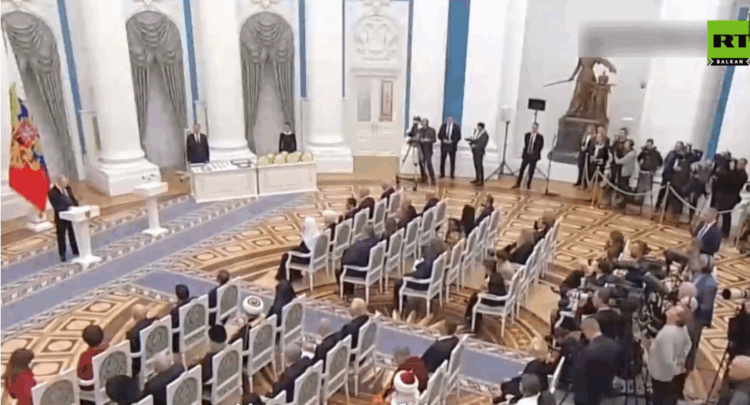 Путин уручује државна одликовања и награде за допринос јачању јединства руске нације у Екатеринској сали Кремља у Москви.